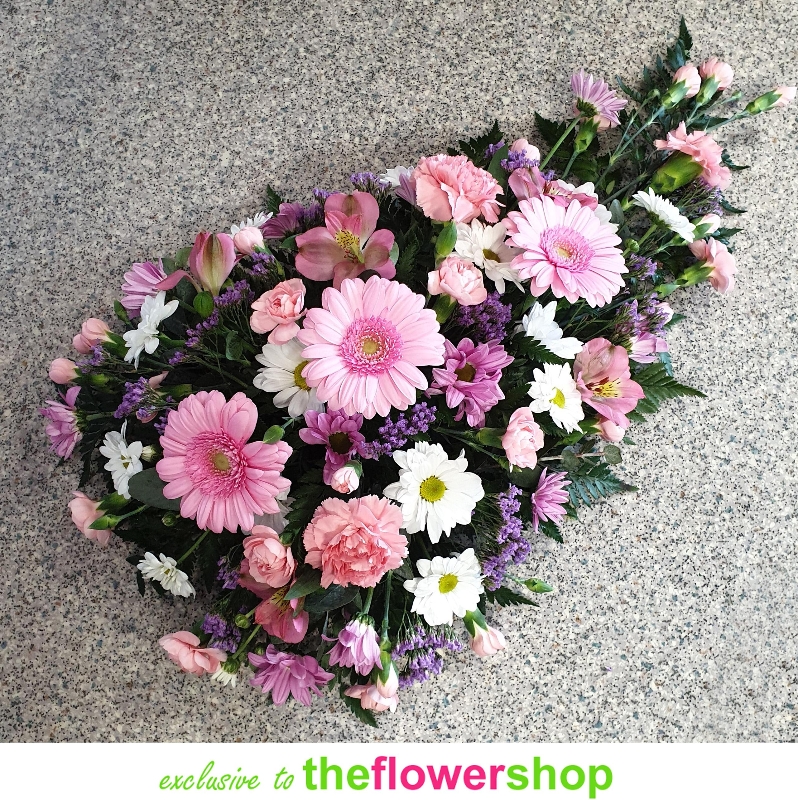 This teardrop shaped tribute will be created by our florist using a pretty selection of pastel shades.
