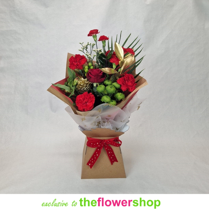 This gift box is sure to bring some Christmas cheer! It will contain a mixture of flowers in red and green, a classic combination. Your gift will be delivered in water.