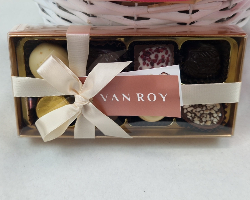 This gift is sure to create a smile! This gift basket contains a cute teddy, box of eight Belgium Chocolates and a pretty posy of fresh flowers.